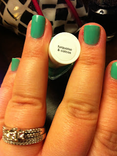 It's official... I have a new favorite nail polish color. I stopped at Walgreens the other day for some essentials and was making my way to the toothpaste when something caught my eye. It was the Essie nail polish rack and it was full of colors! I have a couple Essie colors but they chip easily and I type all day so I haven't purchased any others... but how could I resist? I picked up two summer colors; lilacism and turquoise & caicos. I put the turq on yesterday and I love it! It looks like my nails should be in a summer beach, splashing in the water. My nails are actually making me jealous. I haven't tried the lilac color yet but I plan to over Easter break. I put two coats on yesterday and a coat today because it doesn't cover that well. I think three coats is the charm.